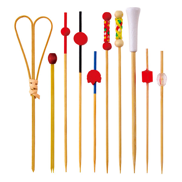Perfect for restaurants, big catering events, and large-sized party settings, These picks are equipped with a cool loop on one end and a point on the other ends, they will add charm to your desserts appetizers and beverage creations. Plus their pointy ends are sharp enough so your guests can use these bamboo tools to poke and pick up fruits, meats, cheeses display, samplings, fruit skewers, and many other culinary treats.